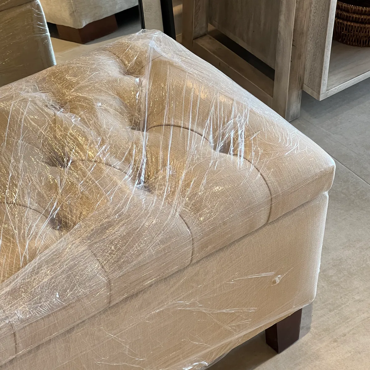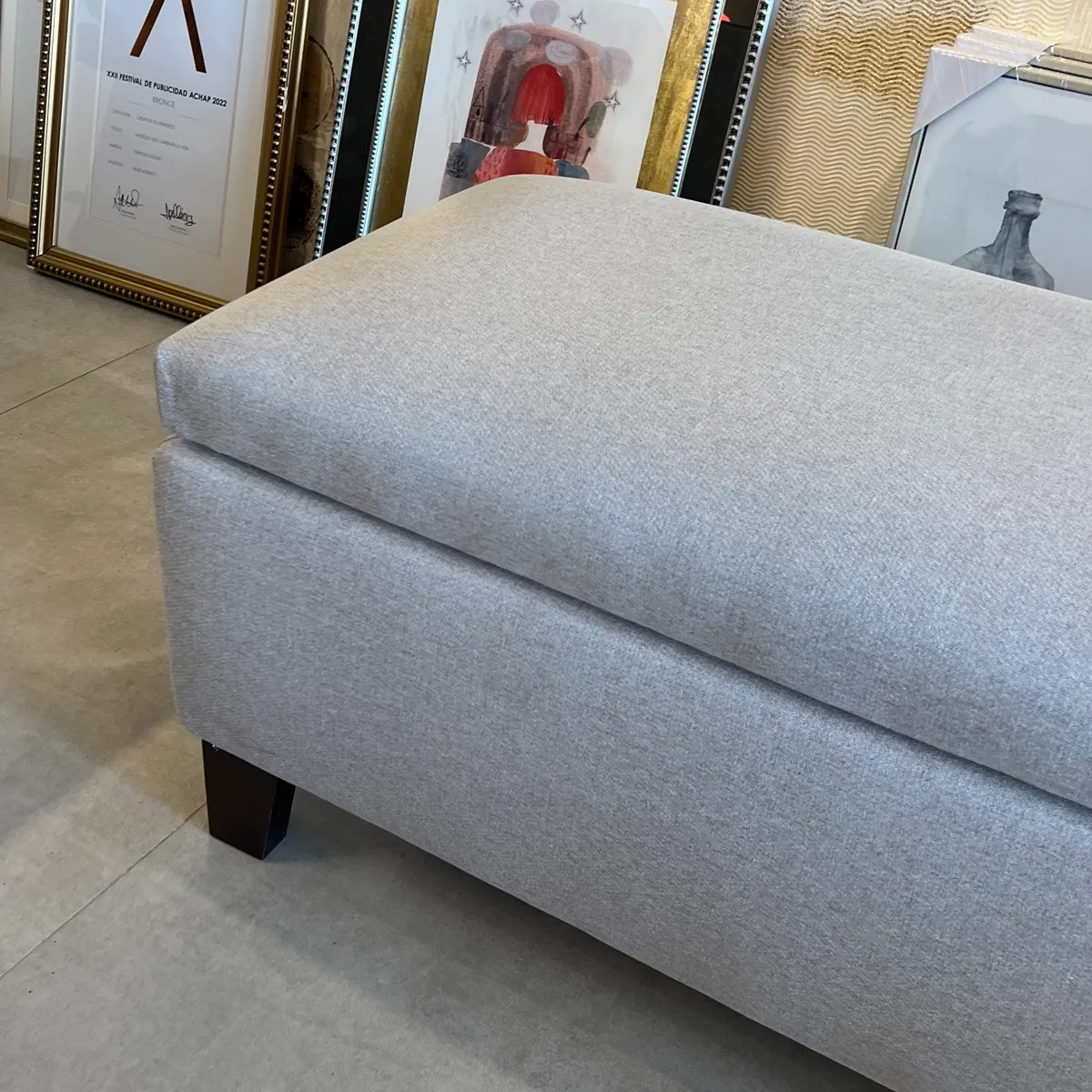 Banqueta Baúl Flat Lino Crudo Grisáceo 120×45 cm Cyber