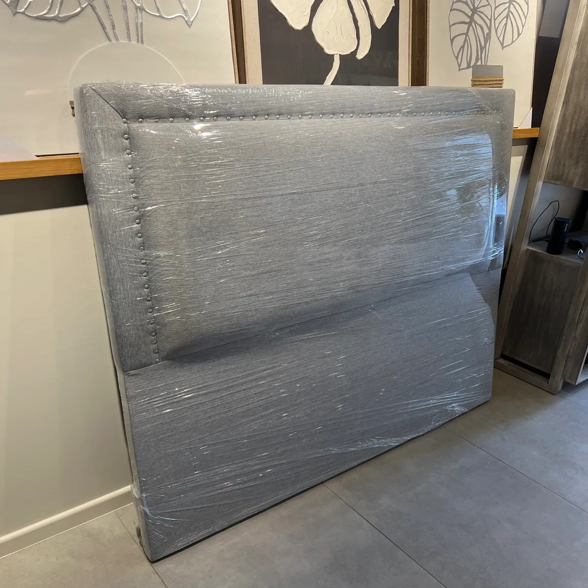 Respaldo Flat Frame Tachas 2 Plazas Lino Gris Plata Cyber