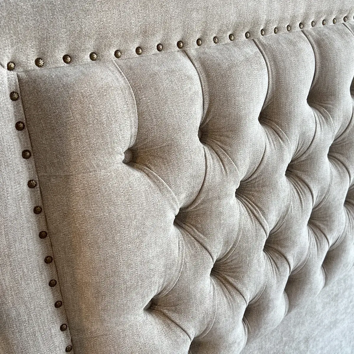 Respaldo de Cama Capitoné Frame Tachas Lino Beige