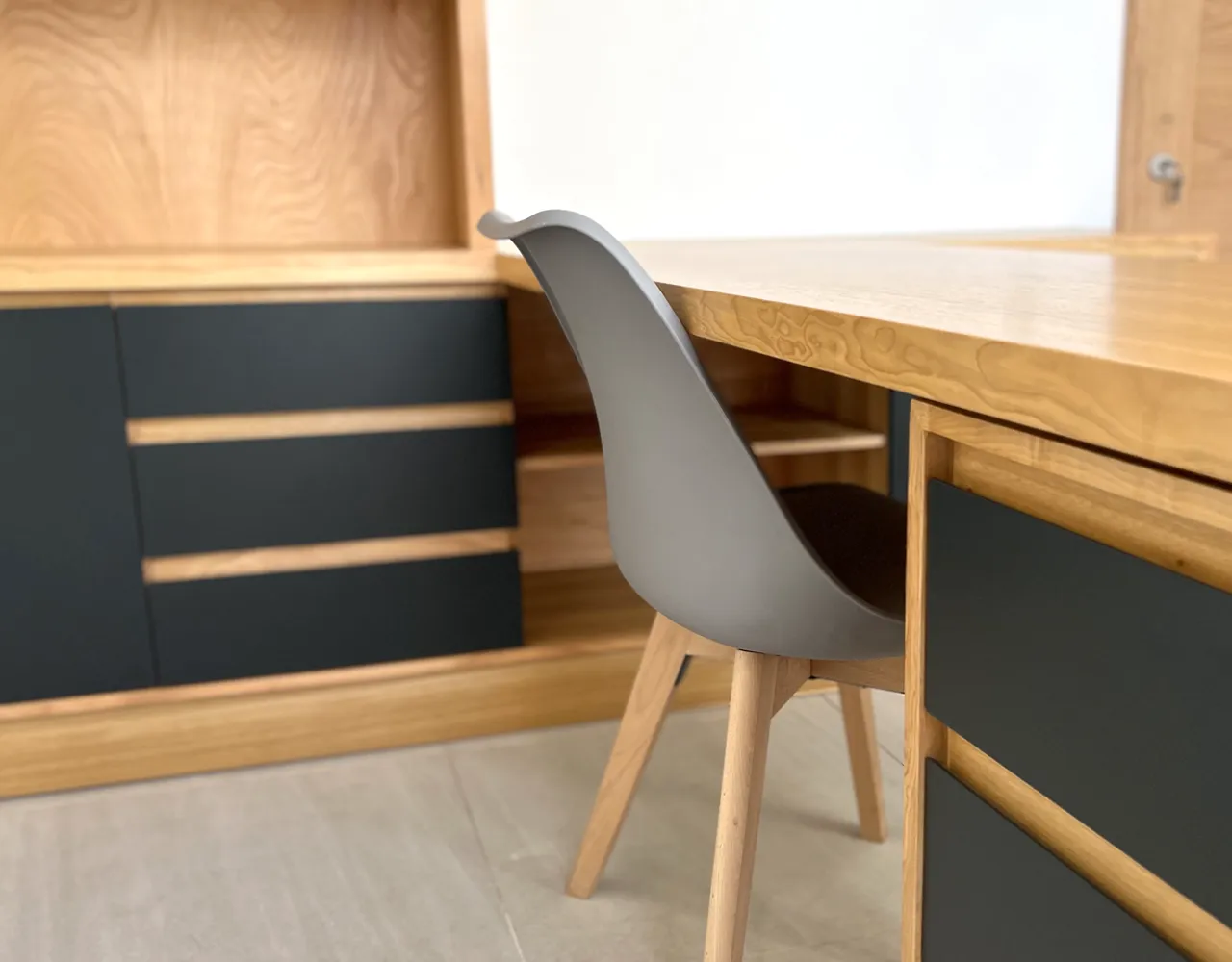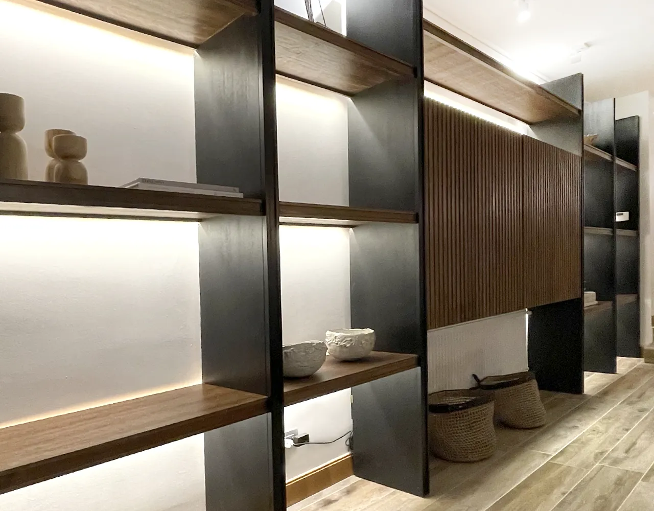El Proyecto La Portería se conforma por una Estantería Modular, un Escritorio Integral y un Home Office. Los muebles están fabricados totalmente a medida, todo personalizado por nuestros clientes.