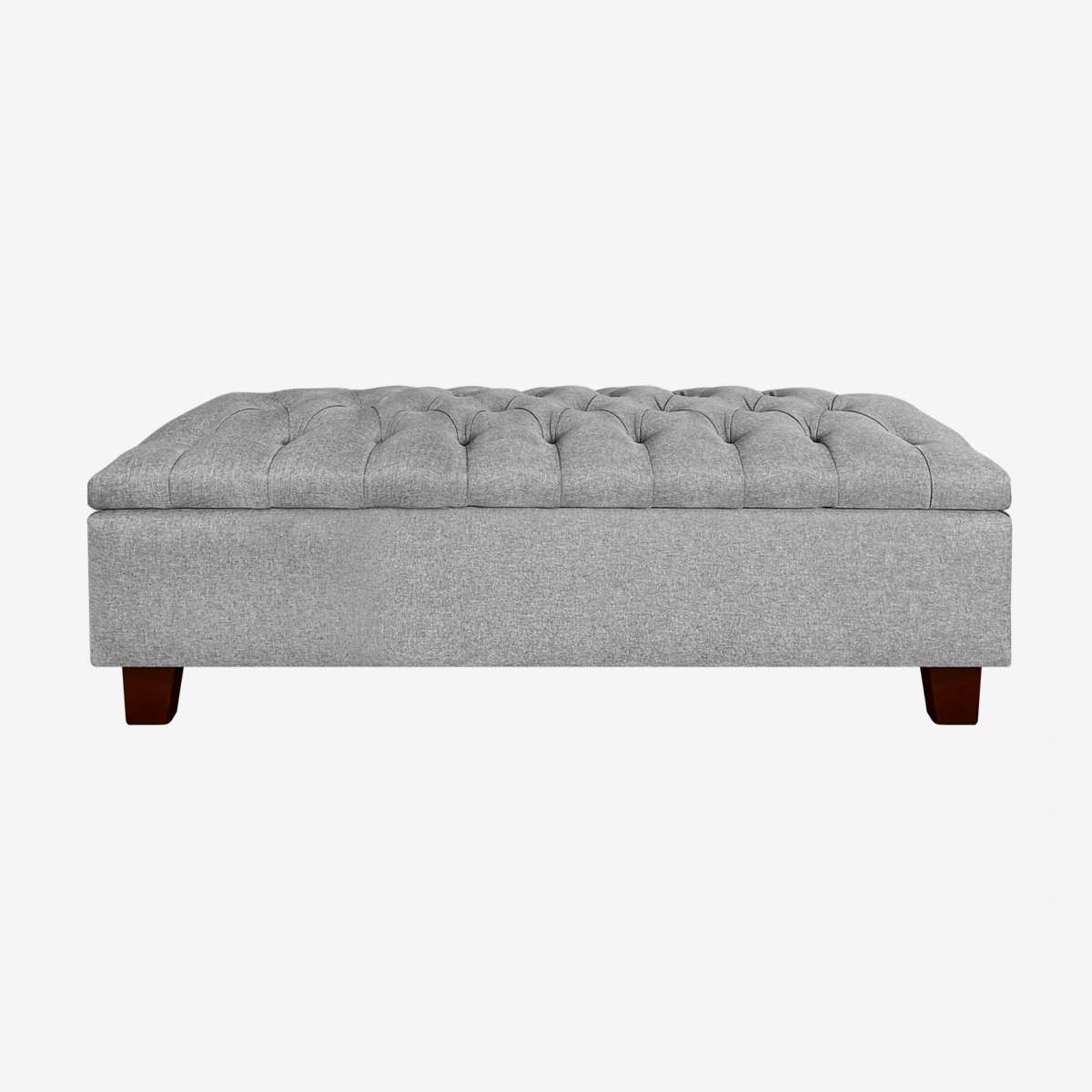 Banqueta baúl modelo Praga fabricada directamente por Mobel Design. Tapizada en tela de lino color gris plata, con patas sólidas en madera color chocolate oscuro. Diseño clásico, ideal para almacenar objetos y decorar a la vez, los distintos espacios de tu hogar. Un complemento perfecto, de uso en dormitorio, living, sala de estar o donde lo prefieras.