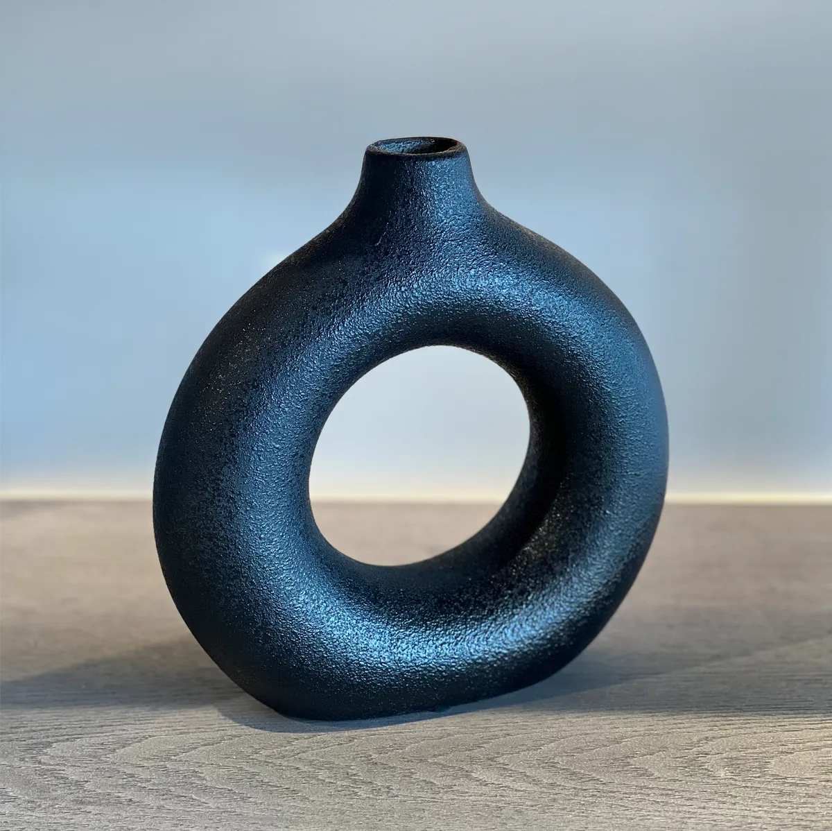Dona es una pieza decorativa contemporánea que destaca por su forma escultórica y su estética minimalista. Su diseño circular con abertura central aporta equilibrio visual y un toque artístico que transforma cualquier espacio.