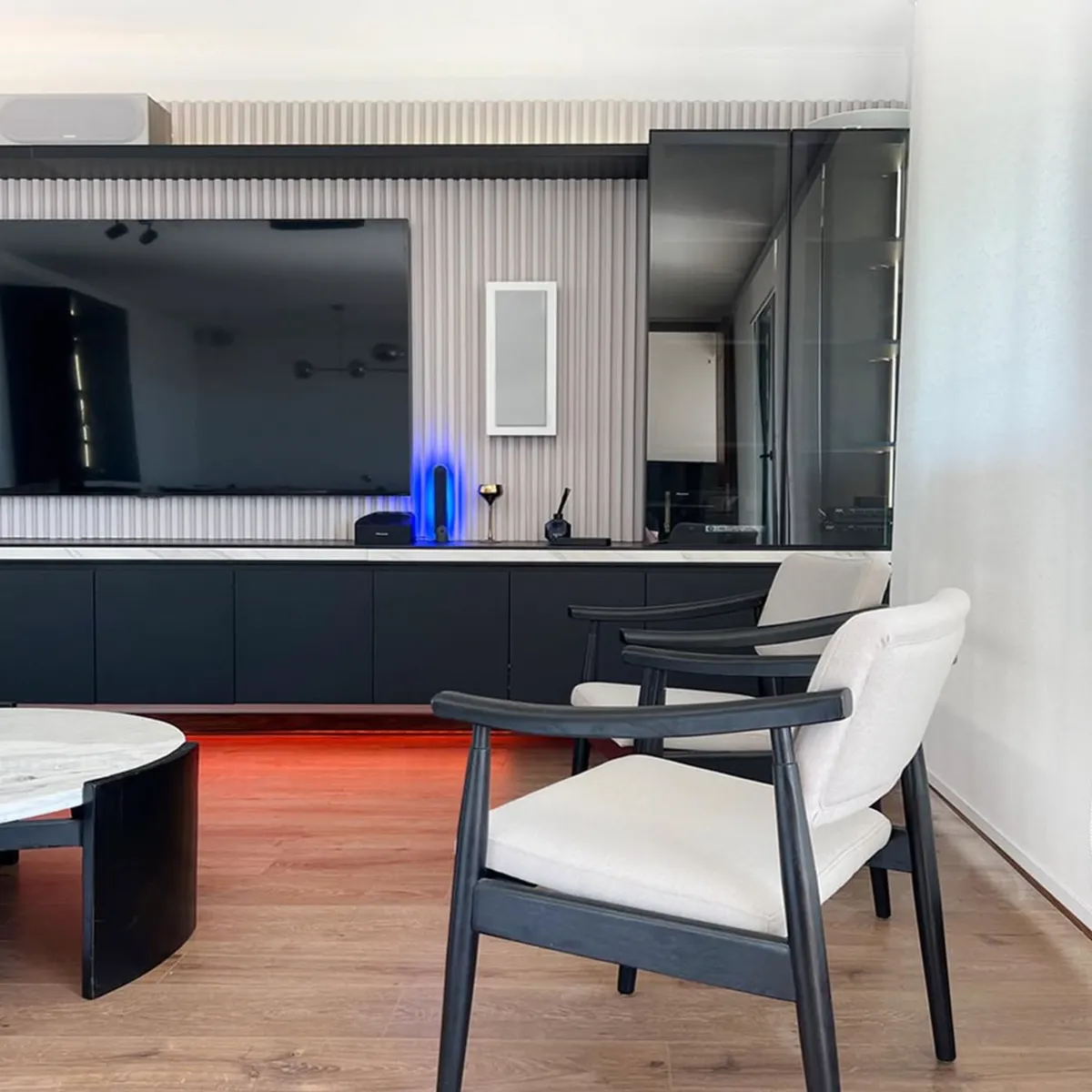 Modular TV El Remanso, una pieza elegante y funcional que combina estilo y practicidad. Su diseño en palillaje blanco con estructura en color negro aporta un contraste sofisticado y contemporáneo, ideal para realzar cualquier ambiente. Incluye iluminación LED integrada, perfecta para crear un ambiente cálido y moderno durante tus momentos de entretenimiento, además de una vitrina iluminada para exhibir copas o elementos decorativos. Fabricado con materiales resistentes y de excelente acabado, este modular ofrece amplio espacio para tu televisor, consolas, libros y objetos decorativos.
