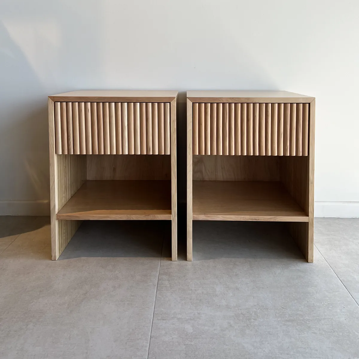 Velador Acapulco, reconocido por su tono suave y veta natural de madera. Su diseño combina líneas limpias y detalles en palillaje vertical en cajón superior, fabricado en madera nativa de lenga, que le otorgan un aspecto moderno y artesanal al mismo tiempo. Cada pieza es única, con las variaciones propias de la madera natural, lo que la convierte en un elemento distintivo dentro de cualquier ambiente. Cuenta con un cajón amplio para guardar objetos personales y un espacio inferior abierto ideal para libros o elementos decorativos. Perfecto para quienes buscan un mueble funcional, duradero y con carácter natural.