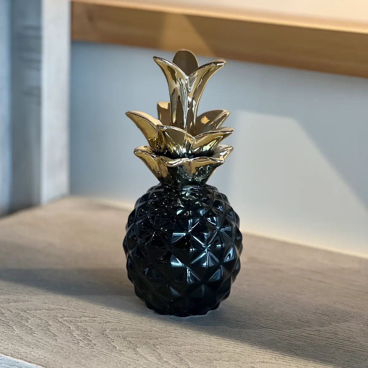 La piña, símbolo de hospitalidad y prosperidad, convierte esta pieza en un elemento decorativo con significado y estilo. Ideal para decorar mesas, repisas, consolas o estanterías, se adapta perfectamente a espacios modernos, contemporáneos o glam.
