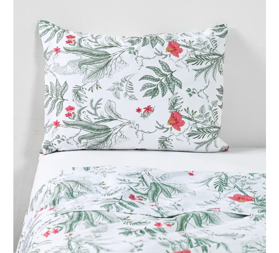 El juego de sábanas 1.5 plazas Mangoa de Cannon Home combina suavidad y frescura gracias a su tela de 200 hilos con 60% algodón. Ideal para camas 1.5 plazas y colchones de 1.5 plazas, su estampado aporta alegría y estilo al dormitorio.