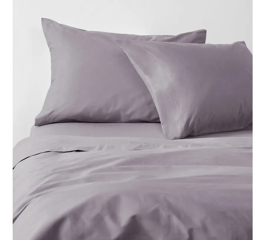 Descubre la suavidad y confort que te entrega este juego de sábanas 2 plazas lila y siéntete renovado después de cada sueño. Las sábanas están fabricadas en materiales de primera calidad: fibras naturales de algodón tejido en 200 hilos. Este set de sábanas 2 plazas incluye dos fundas de almohada del mismo color.