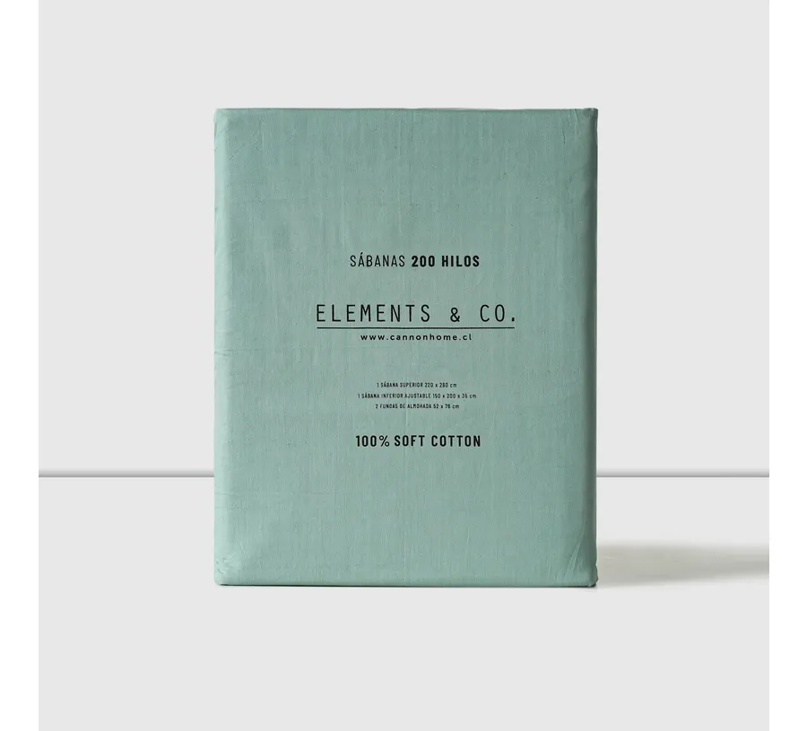 Sábanas 2 Plazas 200 Hilos Menta 100% Algodón Element & Co