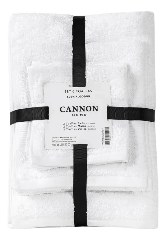 Set 6 Toallas 100% Algodón Baño Mano Visita Lisa Blanca Cannon Home