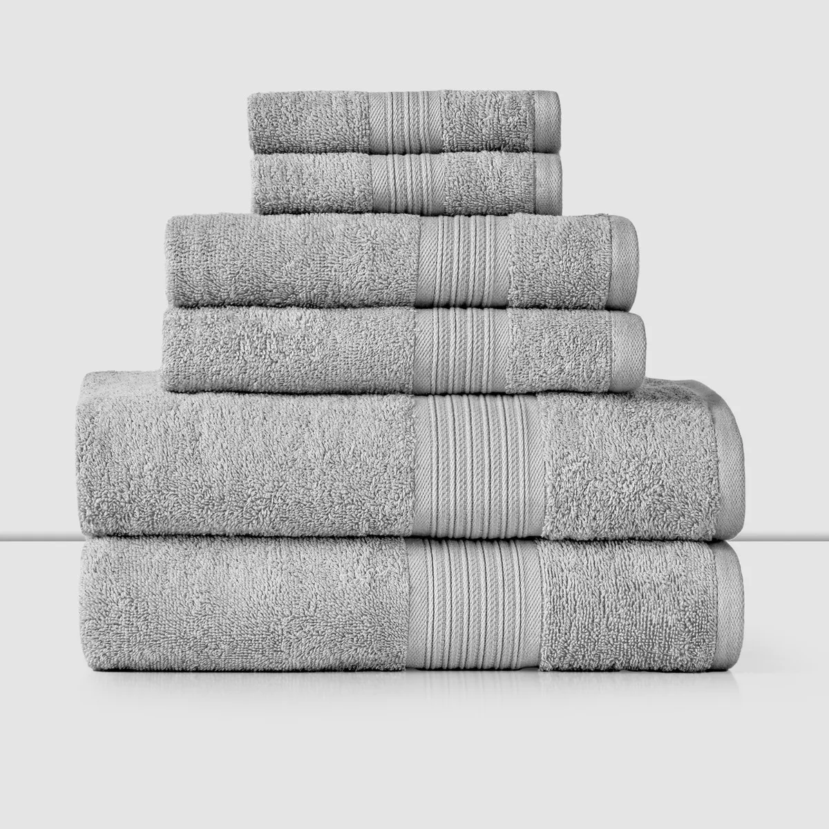 Set 6 Toallas 100% Algodón Baño Mano Visita Lisa Gris Cannon Home