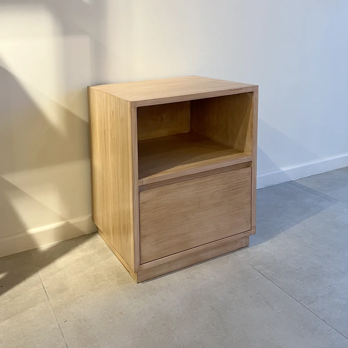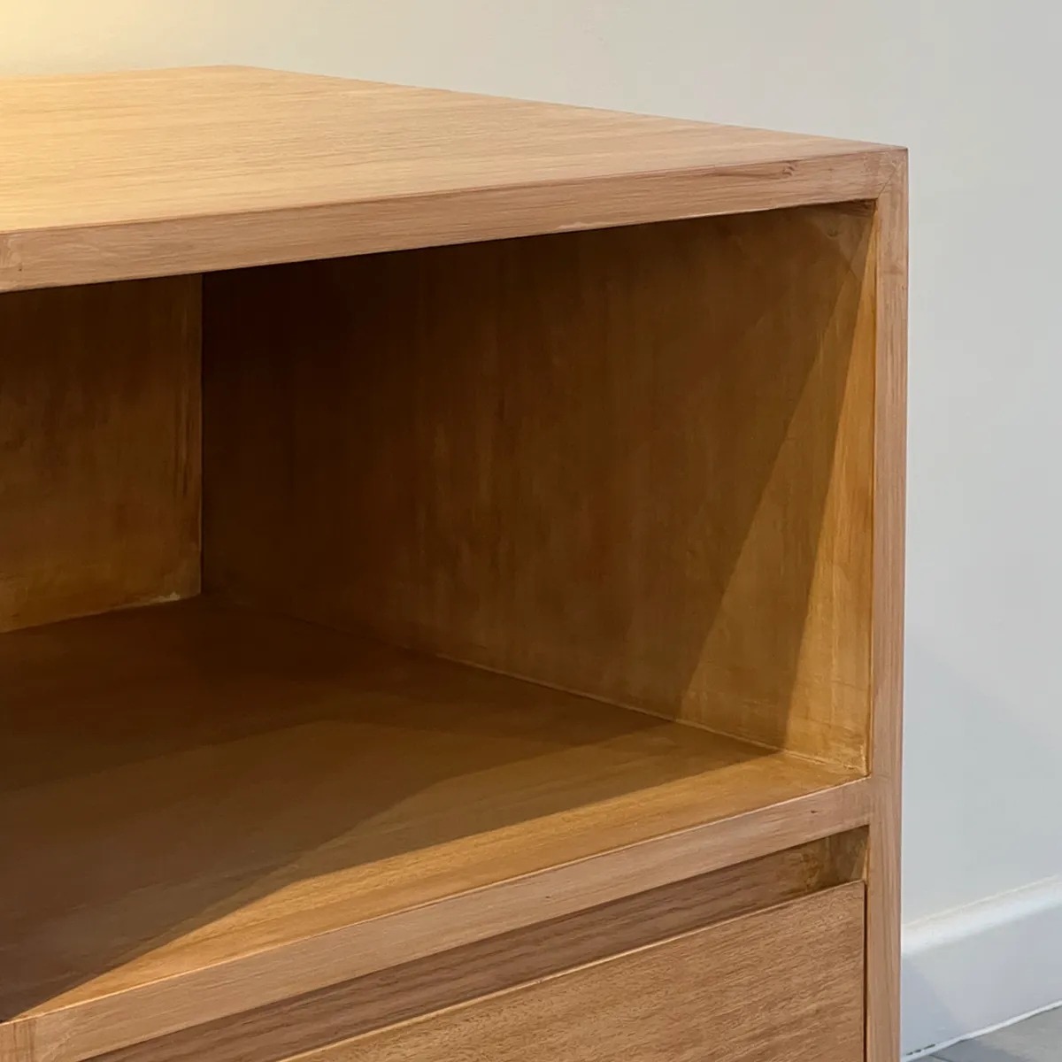 Cuenta con un amplio cajón inferior para mantener el orden y un nicho superior abierto perfecto para libros o elementos decorativos.